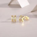 Load image into Gallery viewer, A pair of Aurum Mosaic Stud Earrings featuring geometric silhouette with round-cut moissanite stones set in gold-plated sterling silver.