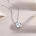 Introducing the Éclat Délicate Moissanite Necklace by The Moissanite Lab. This stunning necklace features a brilliant round-cut moissanite stone, bezel set to showcase its dazzling fire and brilliance. The expertly crafted setting allows the stone to capture light from every angle, enhancing its radiant sparkle. The minimalist yet elegant design offers a timeless appeal, perfect for both everyday wear and special occasions. The Éclat Délicate Moissanite Necklace is a must-have piece, designed to evoke feelings of sophistication and luxury.