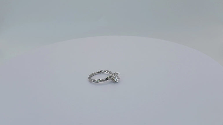 Embrace the beauty of intertwined elegance with the Éclat Entrelacé Moissanite Ring by The Moissanite Lab. This exquisite ring features a stunning round-cut moissanite stone, each securely held in a six-prong setting to enhance its radiant brilliance. The unique twisted band design symbolizes unity and strength, making it an ideal choice for engagements or as a meaningful gift. The Éclat Entrelacé ring is a timeless addition to your jewelry collection, embodying a blend of modern artistry and enduring love.