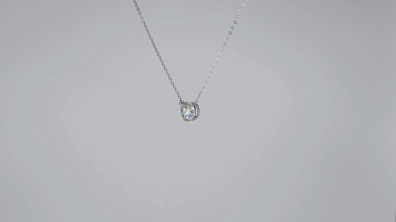 Radiate effortless charm with the Éclat Léviter Moissanite Necklace by The Moissanite Lab. This elegant necklace showcases a single, round-cut moissanite stone, meticulously held by a three-prong setting that allows maximum light to pass through, enhancing its natural sparkle. The unique floating design, combined with the brilliance of the stone, makes it perfect for any occasion, from daily wear to special events. The Éclat Léviter necklace is a timeless addition to your jewelry collection, embodying classic beauty with a touch of modern sophistication.