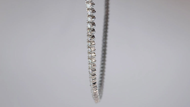 Indulge in timeless luxury with the Éternelle Princesse Moissanite Tennis Necklace by The Moissanite Lab. This exquisite necklace features a cascade of perfectly arranged round-cut moissanite stones, each three-prong set to create a captivating sparkle and elegant drape. The intricate design and fluid lines evoke a sense of sophistication and grace, making it an ideal piece for formal occasions or adding a touch of glamour to any outfit. The Éternelle Princesse tennis necklace is a radiant addition to your jewelry collection, embodying classic elegance with a modern twist.