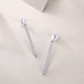 Embrace modern sophistication with the Ligne Pavé Moissanite Earrings by The Moissanite Lab. These sleek drop earrings feature a slender bar design encrusted with round-cut moissanite stones, each pavé-set to maximize brilliance. The minimalist and elongated shape of the earrings creates an elegant and contemporary look, perfect for both daily wear and special occasions. The Ligne Pavé Moissanite Earrings are a stunning statement of refined style, adding a touch of modern glamour to any ensemble.