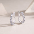 Embrace timeless elegance with the Pavé de Lumière Moissanite Hoop Earrings by The Moissanite Lab. These stunning earrings feature a graceful row of round-cut moissanite stones, each securely held by four-prong settings, maximizing their dazzling brilliance. The delicate curvature and precise stone placement evoke a sense of refined sophistication, perfect for both everyday elegance and special occasions. The Pavé de Lumière Hoop Earrings are a must-have addition to any jewelry collection, offering an exquisite blend of luxury and timeless beauty.
