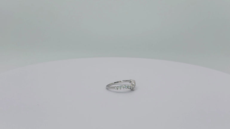 Add a touch of modern elegance with the Tiare Princesse Moissanite Ring by The Moissanite Lab. This dazzling ring features a graceful V-shaped band adorned with sparkling round-cut moissanite stones, each securely held in a four-prong setting to enhance their radiant brilliance. The unique curve design creates a contemporary twist on a classic style, perfect for those who appreciate distinctive and refined jewelry. The Tiare Princesse ring is a stunning addition to your jewelry collection, embodying a blend of modern sophistication and timeless charm.